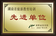 2007旅游教育培訓(xùn)先進(jìn)單位 湖南省旅游局(2007.4)