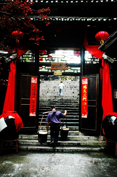 土家風(fēng)情園土司城坐落于張家界市區(qū),景區(qū)總占地面積80余畝,總投資7500萬元,主要項(xiàng)目有土司城和畢茲卡圣火堂,土司城原為永定土司城,是一座古老的土家山寨。土司城內(nèi)有醉人的土家欄門酒,神秘的土家祭祖活動(dòng)、土家歷史文物展示、土家民俗演示、“九重天”“千人毛古斯”兩項(xiàng)世界吉尼斯之最。