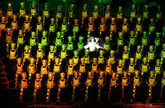 以此基礎(chǔ)進(jìn)行了藝術(shù)再創(chuàng)造,悲傷、歡樂、笑容、淚水交合成一個(gè)曲折動(dòng)人的故事。整場(chǎng)演出體現(xiàn)人物細(xì)節(jié),以個(gè)性化的敘事結(jié)構(gòu)給人以親近感和頭尾呼應(yīng)的完整感。汲取世界豐富的音樂文化元素和表現(xiàn)形式,輔之以現(xiàn)代高科技的舞臺(tái)特效技術(shù),對(duì)世界音樂歌舞劇的一次成功的創(chuàng)新,成為中國(guó)山水實(shí)景演出的劃時(shí)代巨獻(xiàn)。