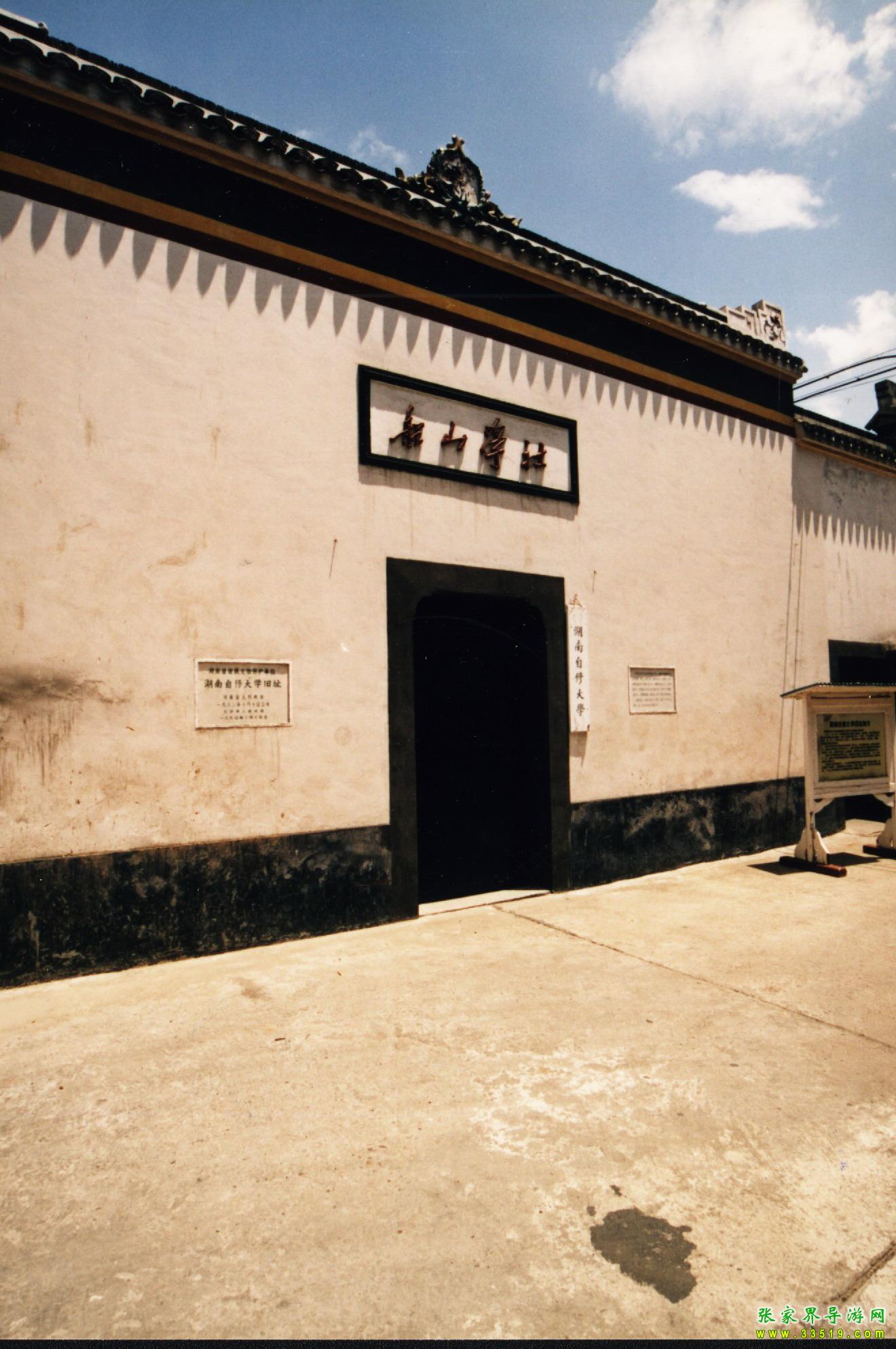 湖南自修大學(xué)舊址在中山東路263號(hào),原為曾國(guó)藩祠的一部分。光緒初,郭嵩燾在此創(chuàng)辦思賢講舍。1912年劉人熙將其易名為船山學(xué)社。1921年8月,毛澤東、何叔衡于中共“一大”后,取得社長(zhǎng)仇亦山,總干事王季范等同意,在此創(chuàng)辦湖南自修大學(xué),李達(dá)為首任校長(zhǎng)。
