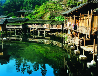 交通提示:從芙蓉鎮(zhèn)碼頭出發(fā),登上機(jī)動(dòng)船,經(jīng)過約三個(gè)小時(shí)的行程,航道越來越窄,終停泊在一個(gè)小渡口。沿著碼頭拾級(jí)而上,不遠(yuǎn)便可登上開往小溪的班車。