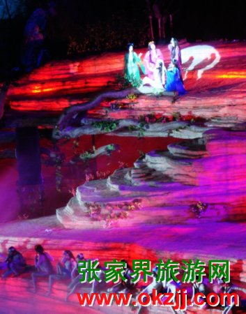 在天門山景區(qū)全球最大的玻璃鋼舞臺上,在開幕式上試演的世界第一臺大型山水實景音樂劇《天門狐仙》,拉開了’2009中國湖南國際旅游節(jié)張家界民族文化周的序幕。