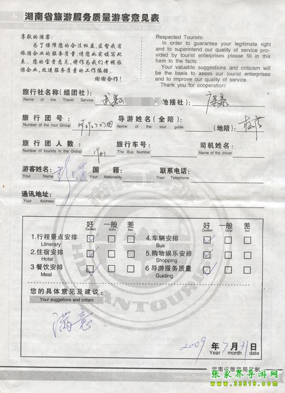 - 游客夏先生為表揚導游李姣姣寫來表揚信致我張家界... [14811]