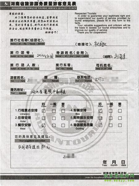 - 2011年10月26日張小姐一行18人旅游質(zhì)量反饋 [10482]