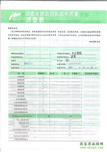 2011年10月26日張小姐一行18人旅游質(zhì)量反饋