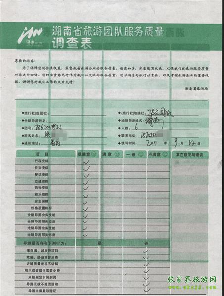 2011年9月12日梁先生一行6人旅游質量反饋