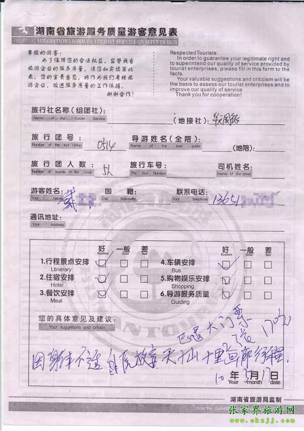 - 游客夏先生為表揚導游李姣姣寫來表揚信致我張家界... [14811]