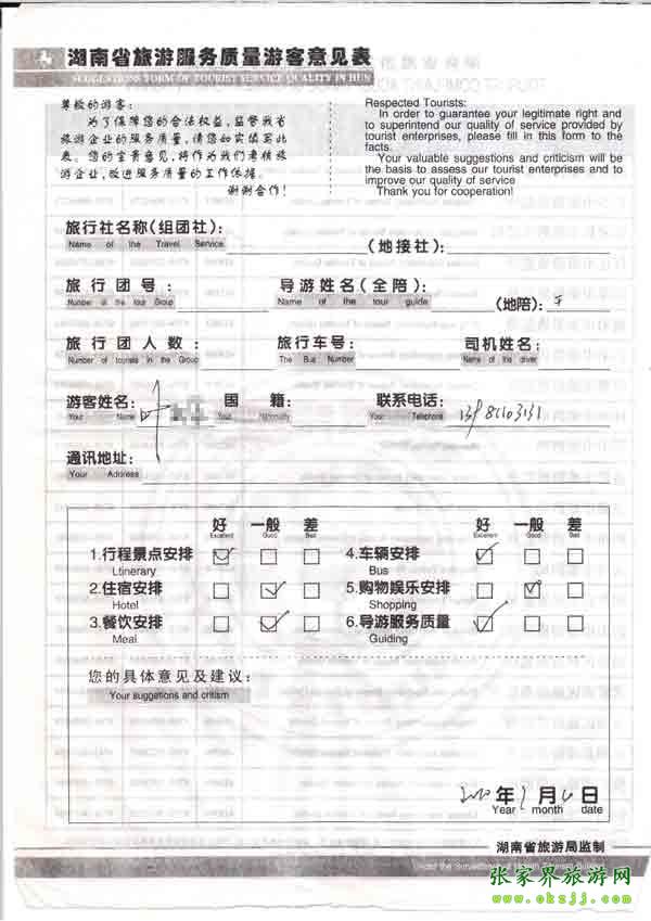 - 2011年10月26日張小姐一行18人旅游質(zhì)量反饋 [10482]