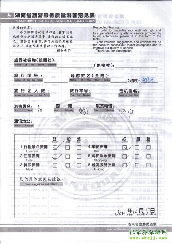 - 游客夏先生為表揚導游李姣姣寫來表揚信致我張家界... [14811]