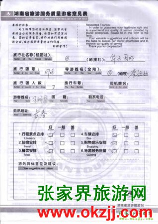 2010年7月9日長(zhǎng)春汪先生一行2位旅游質(zhì)量反饋