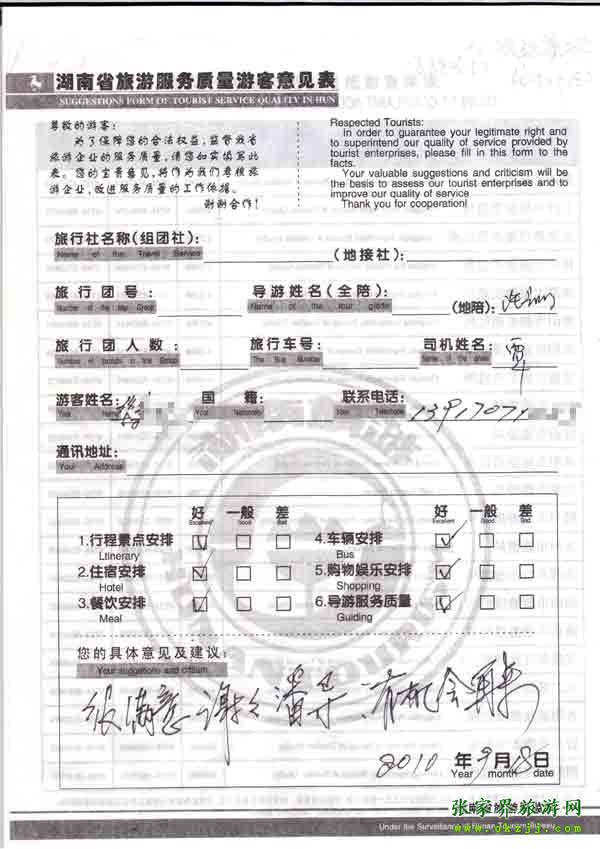 - 2011年10月26日張小姐一行18人旅游質(zhì)量反饋 [10482]