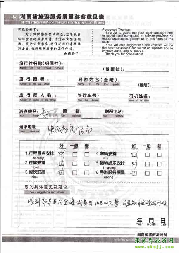 - 游客夏先生為表揚導游李姣姣寫來表揚信致我張家界... [14811]