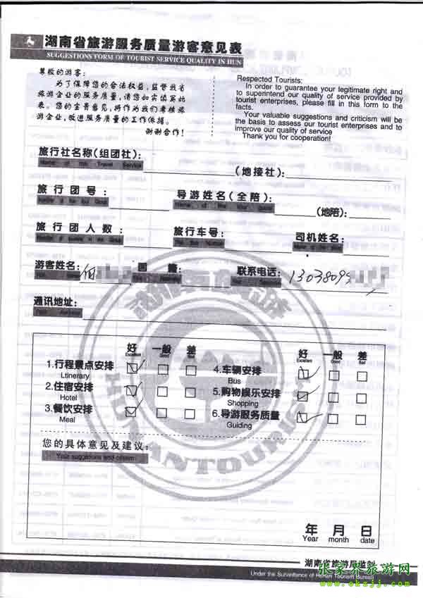 - 2011年10月26日張小姐一行18人旅游質(zhì)量反饋 [10482]