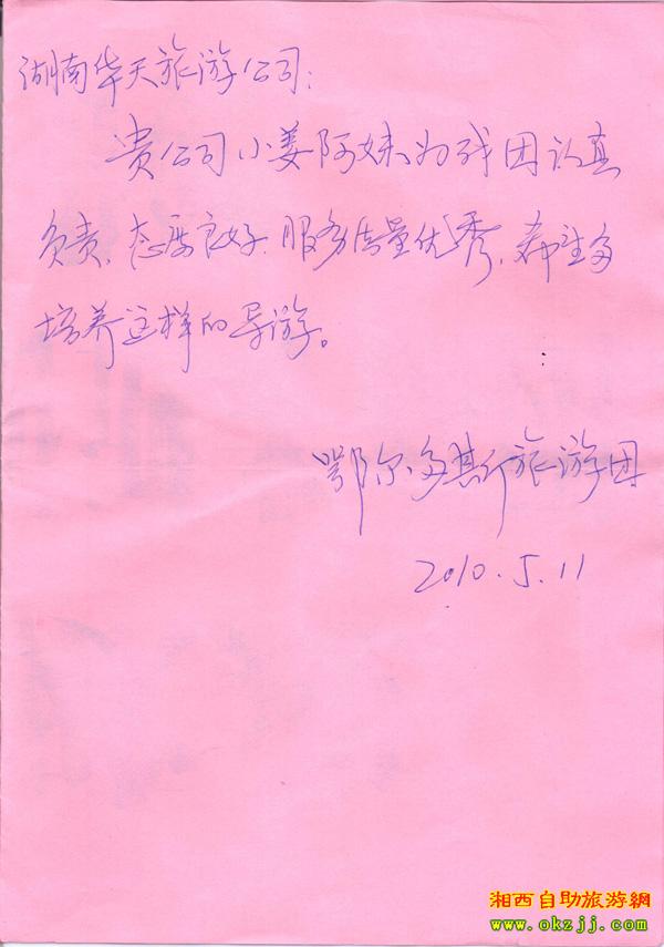- 游客夏先生為表?yè)P(yáng)導(dǎo)游李姣姣寫來表?yè)P(yáng)信致我張家界... [14811]